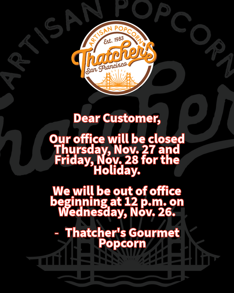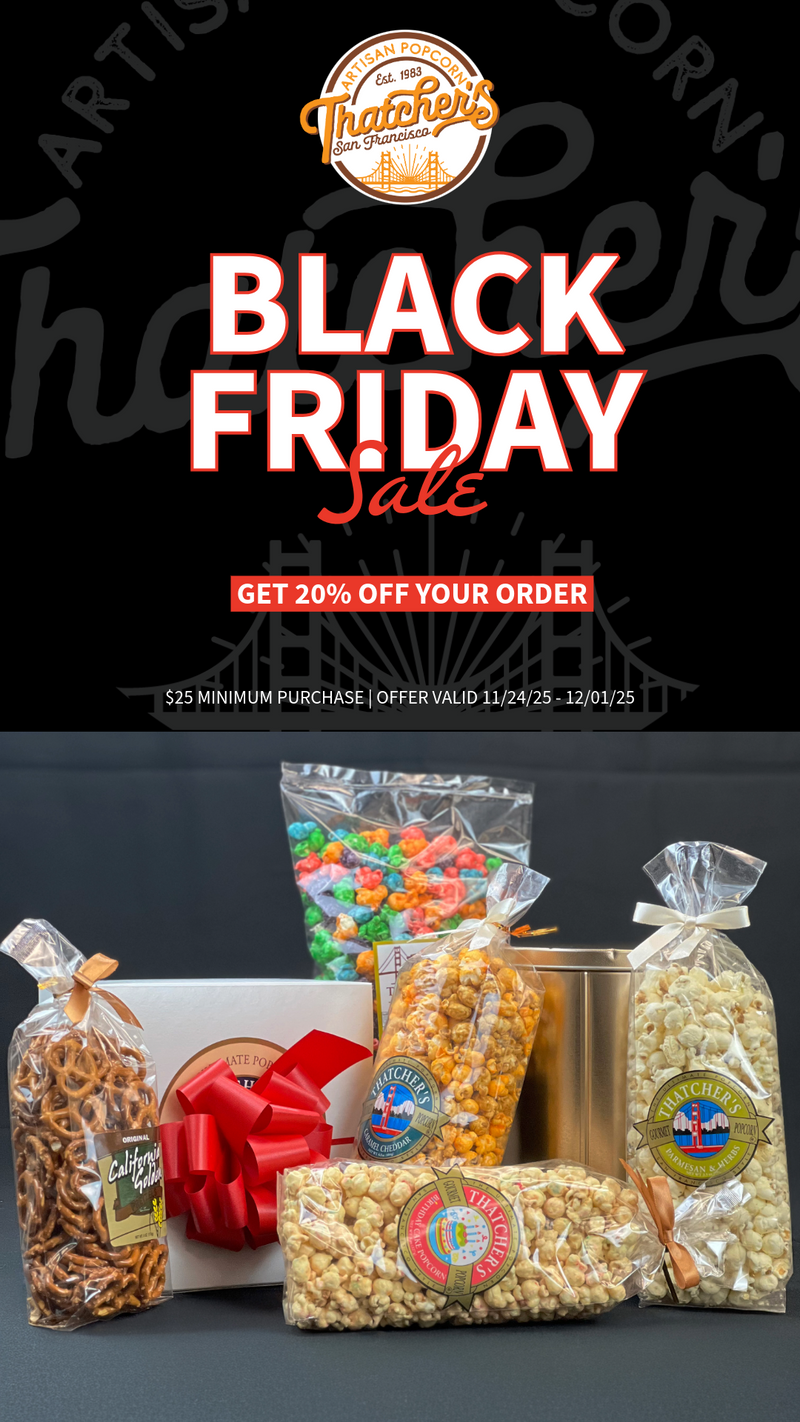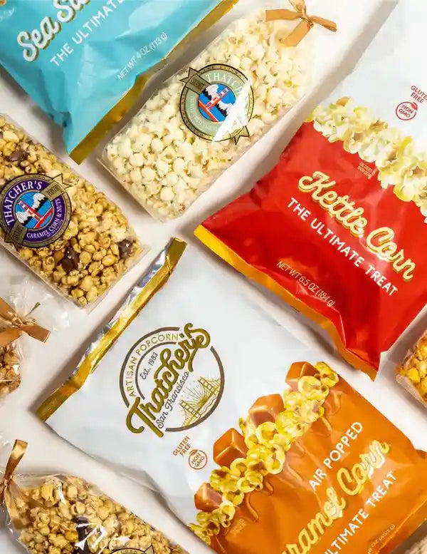 At Thatcher’s, we don’t just make popcorn—we craft little bursts of happiness. Since 1983, our small-batch process has been all about quality, fun, and flavor. Whether you’re craving classic Caramel, zesty White Cheddar, or something adventurous like Birthday Cake, we’ve got a pop for every palate!